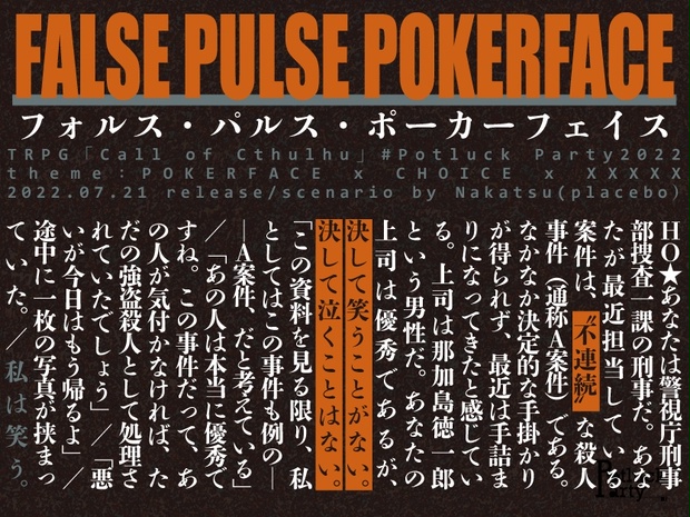 【CoCソロシナリオ】フォルス・パルス・ポーカーフェイス - なかつ通販ページ - BOOTH